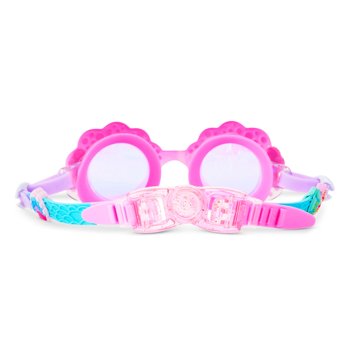 Enchanted Shoreline is made for kids ages 6 and up who like their swimwear to match their mermaid aesthetic. This seashell-shaped goggle is detailed with rainbow rhinestones, tiny seahorse accents, and a shimmering pastel palette—enchanting every pool day.